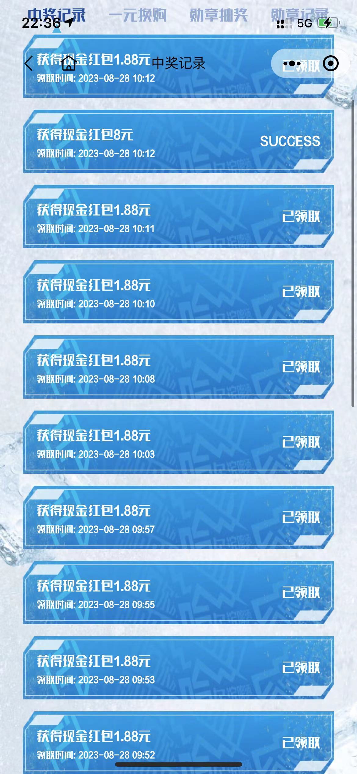 百威活动可以扫码24次、单次红包2.88 、中奖率有高有低