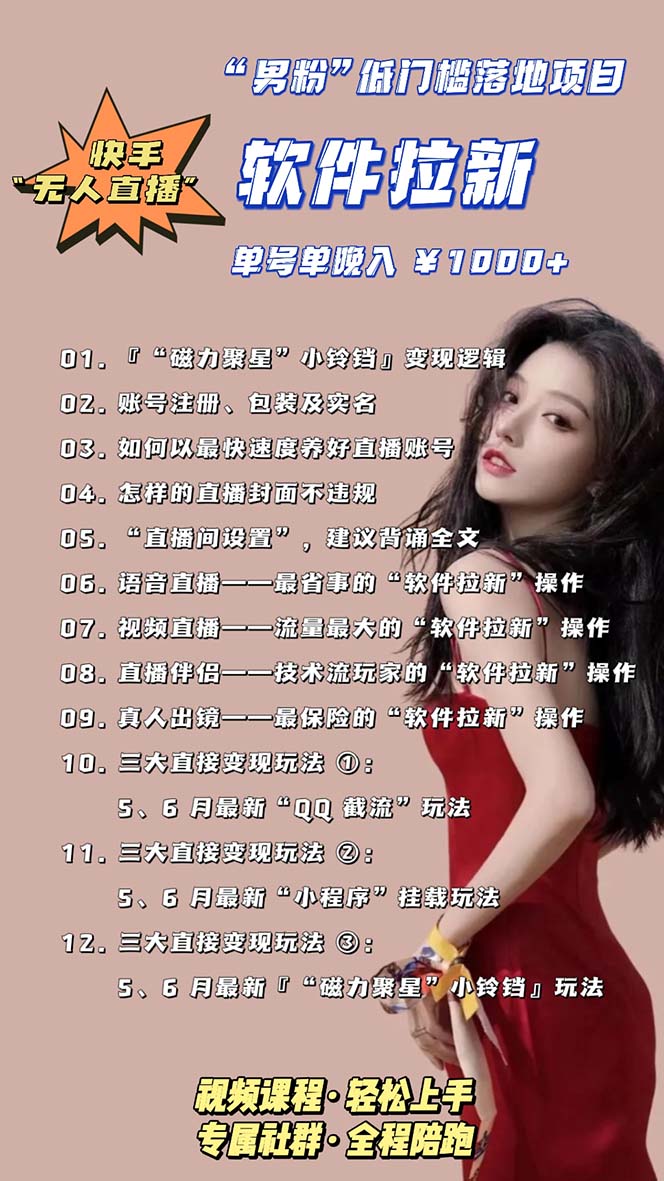 答:快手官方“磁力聚星”小铃铛 + 无人直播。