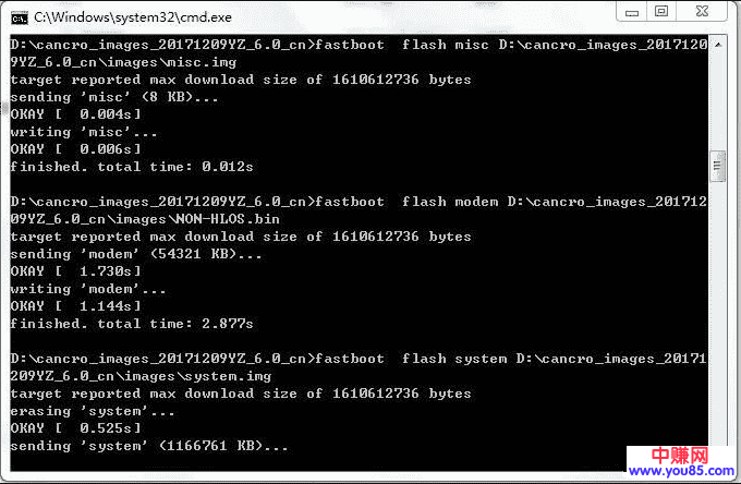 3、右键以管理员模式,打开“一键刷机”批处理文件,耐心等待刷机完成,手机自动重启!第一次开机需要5-10分钟